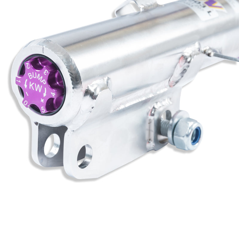 Cutting-edge motorsports technology -or more performance on the road. Like every suspension product developed by KW automotive and manufactured in Germany, the KW Variant 3 Coilover suspension kit also provides a significant improvment on the road. Thanks to the high-quality dampers, springs, and elastomer spring elements, pitching and rolling movements during load changes such as evasive maneuvers, cornering, acceleration, and braking are significantly reduced. The braking distances are also shortened. Thanks to improved support and feedback, drivers not only feel more confident but driving in everyday life is improved. With compression and rebound stage damping, that can be set separately and independently of each other, the damper setup can be customized to your personal driving preferences or vehicle changes such as weight, tire characteristics, or altered vehicle rigidity. True performance optimization is only possible with this unique, patented system. For example, this allows the compression damping force to be increased and get more grip from the tires, to improve cornering behavior and reduce squat without simultaneously altering the rebound stage damping which is optimally matched to the spring rate ? a scenario which results in reduced grip and the associated loss of performance. The KW Variant 3 INOX-LINE coilover kit is the ideal tool for performance-oriented drivers and experienced tuning enthusiasts who place a strong emphasis on the overall performance of their suspension. The Variant 3 features patented TVR-A and TVC-A technology -hat provides separately adjustable rebound and compression damping. The extensive Adjustment -ange of the independently configurable rebound and compression make it easy to directly influence the steering behavior, directional stability, grip and handling characteristics for confident and repeatable results at the limit of driving dynamics.